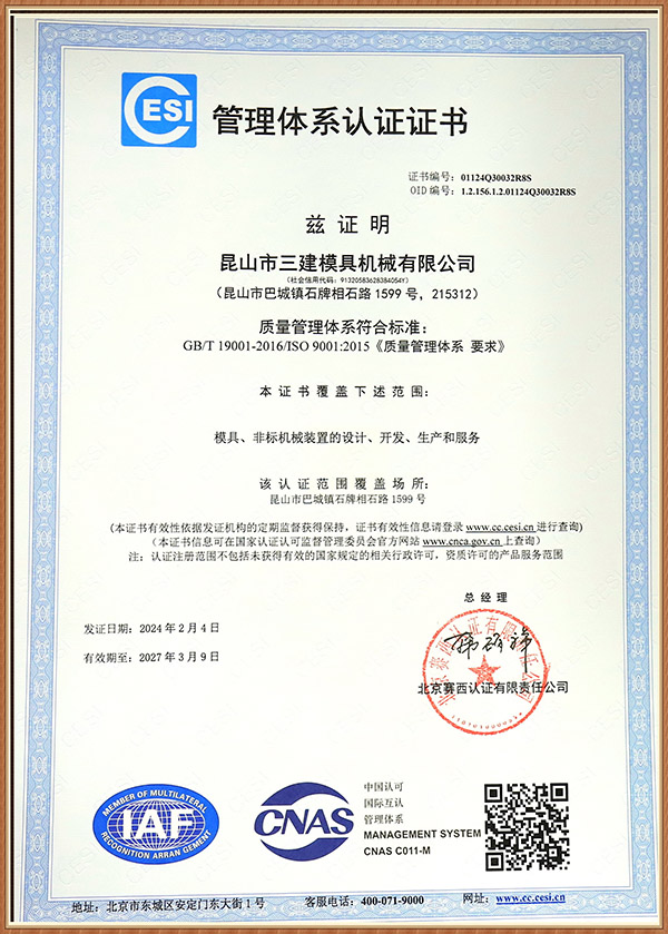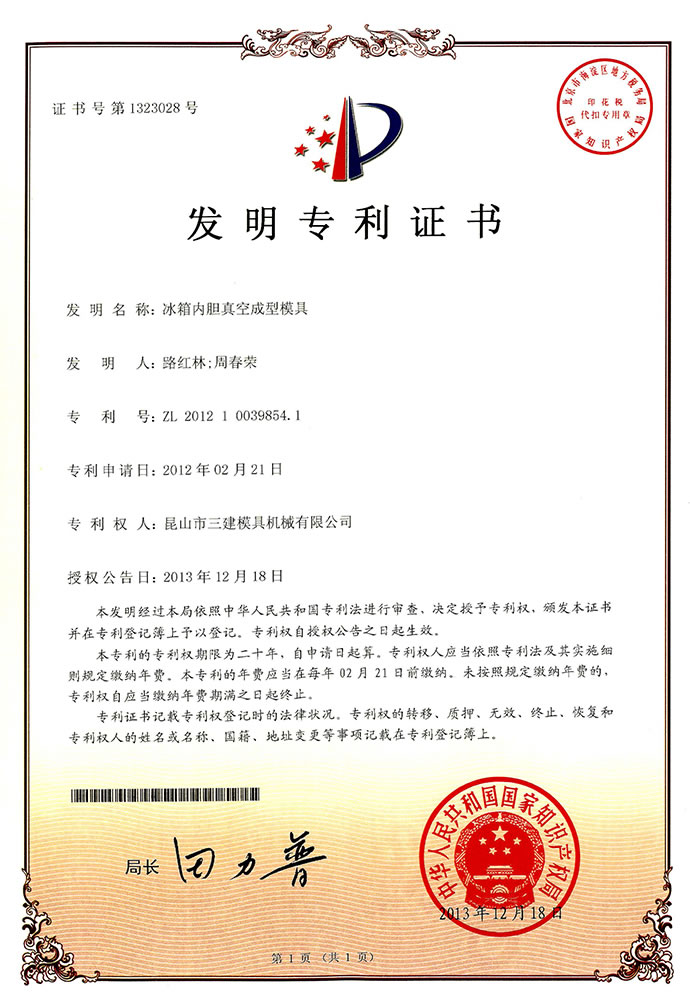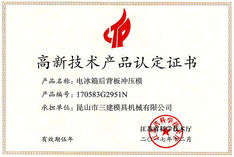 昆山市三建模具機械有限公司 創建于1996年,是一家研發生產電冰箱模具(電冰箱門、箱真空成型吸塑模、沖孔切邊模、